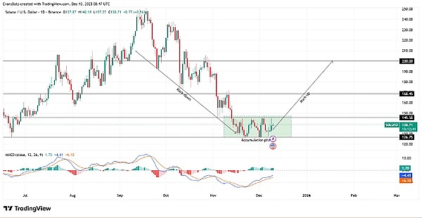 鲸鱼一出手,中心化交易所的 SOL 就变少了,供应一紧,看涨情绪自然就上来了。现在 SOL 就卡在 126-145 美元的震荡区间上沿,大资金都在等着加码,就差一个突破的契机。