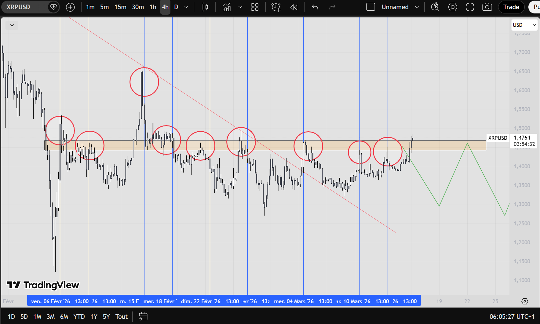 在之前的交易时段,XRP屡次在非高峰交易时间向1.48美元阻力位发起冲击。