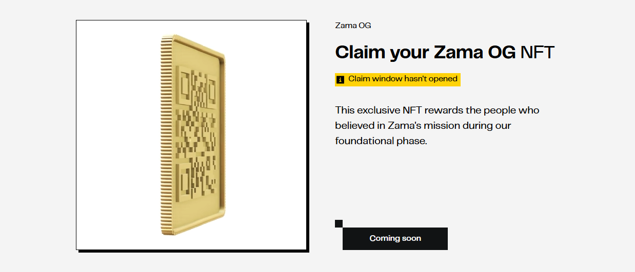 此外,OG NFT 铸造页面即将开放,早期参与者开放时检查是否有资格(链接:https://www.zama.org/nft/og)。