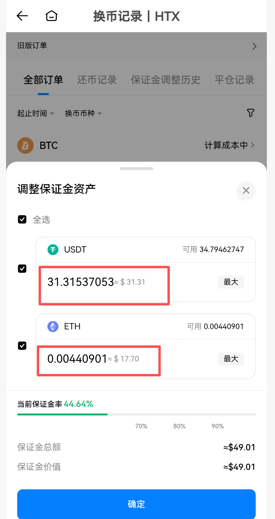 - 完成前述步驟後,質押率將隨之調整。請務必確認調整後的質押率低於追繳保證金的質押率。